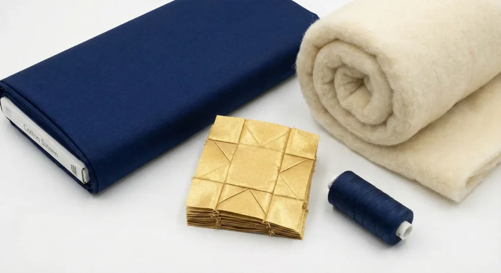 Your quilt top is textured and rich; your backing should be calm and smooth. Finish the quilt with a high-thread-count cotton sateen backing. The silky finish of sateen feels luxurious against the skin and prevents friction against pajamas, allowing you to move freely under the heavy quilt.