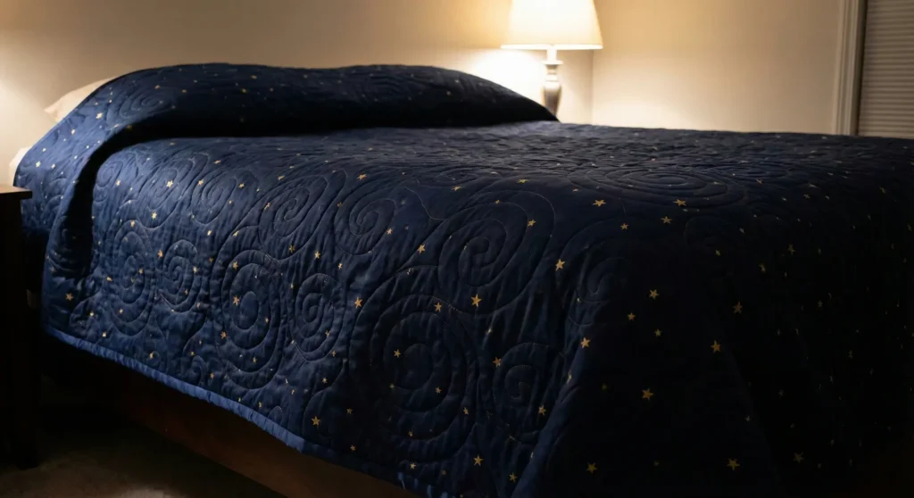 Baste your top and backing with a bamboo-cotton blend batting, which offers a heavier, more comforting drape than polyester while remaining breathable. This natural fiber regulates temperature excellently, keeping you warm without the stuffy, sweaty feeling of synthetic fillers.