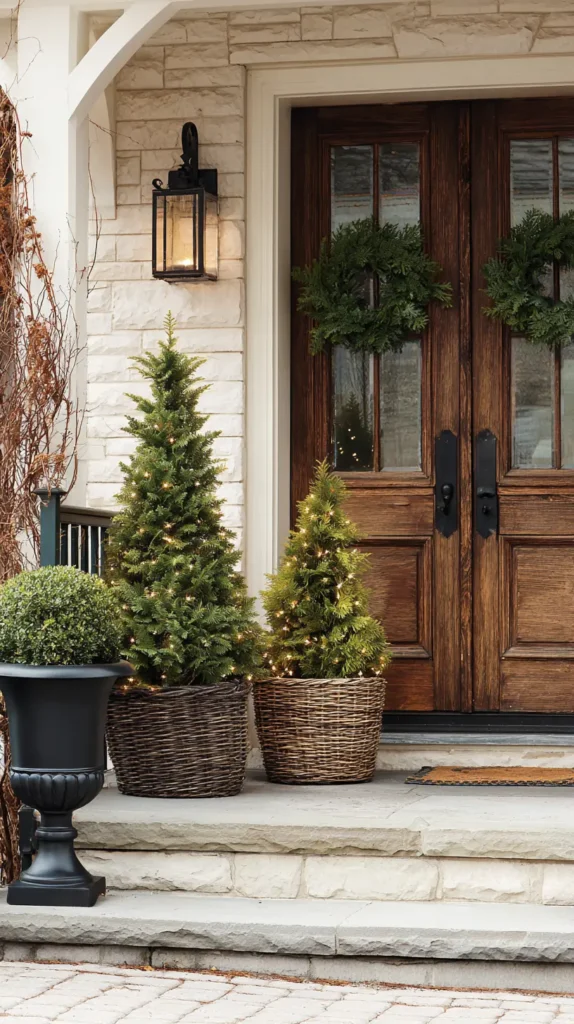 - 7 6. Flanking the Entrance with Mini Potted Christmas Trees